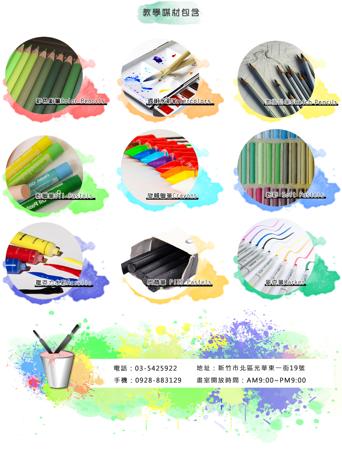 兒童創意美術 兒童創意美術進階 基礎西畫/素描 基礎西畫/水彩 進階西畫 升學考試特訓